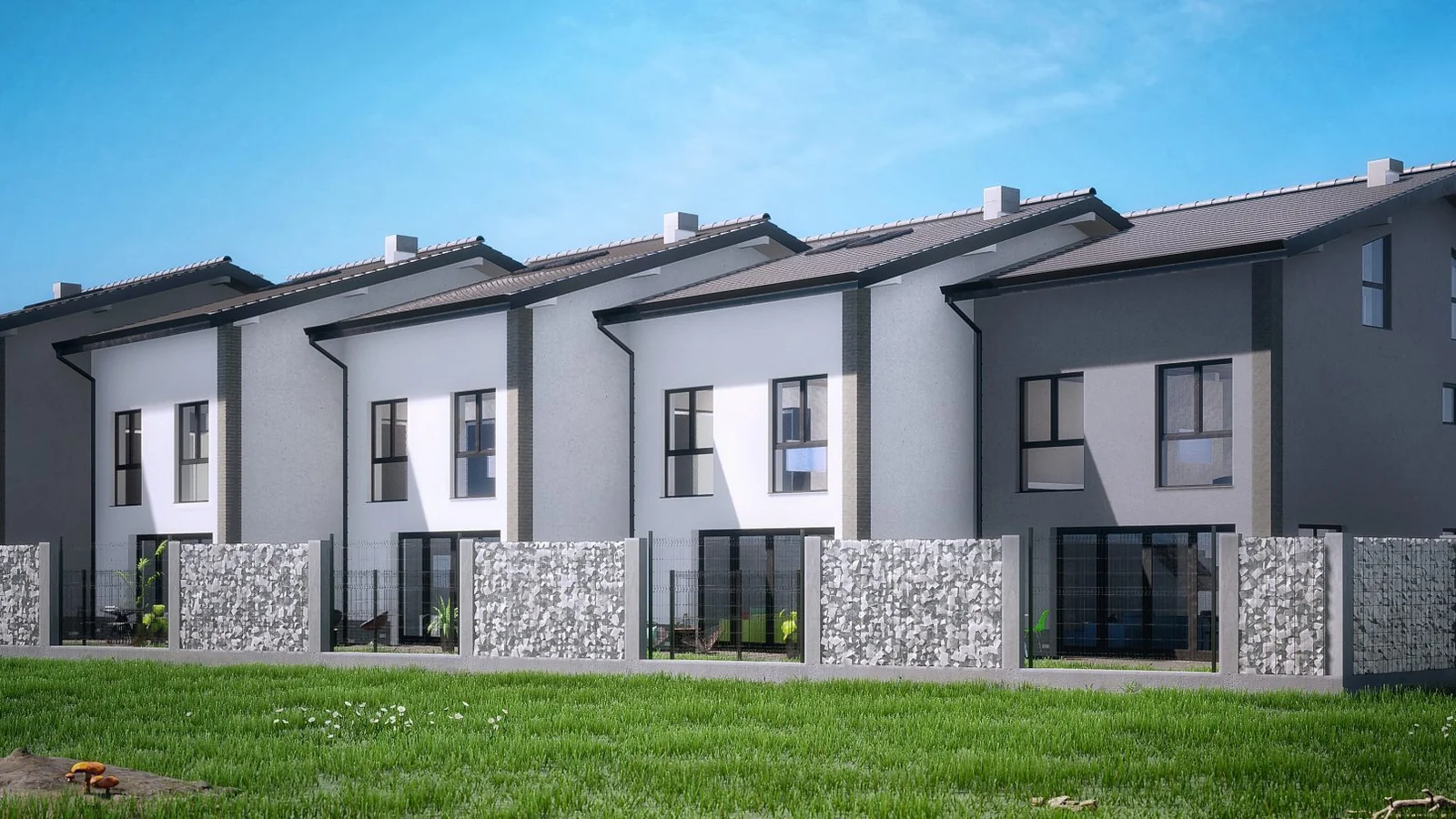 Проектът включва пет двуетажни къщи с изчистен силует и съвременна визия. Концепцията е насочена към комфортно ежедневие, добро вътрешно разпределение и среда, която съчетава близост до града с по-тих ритъм на живот.